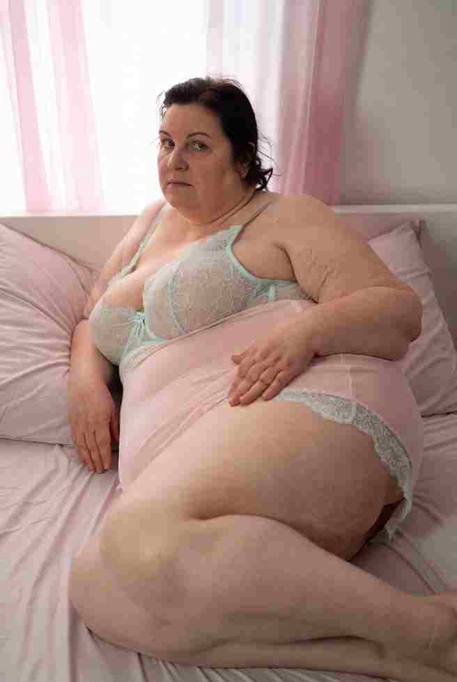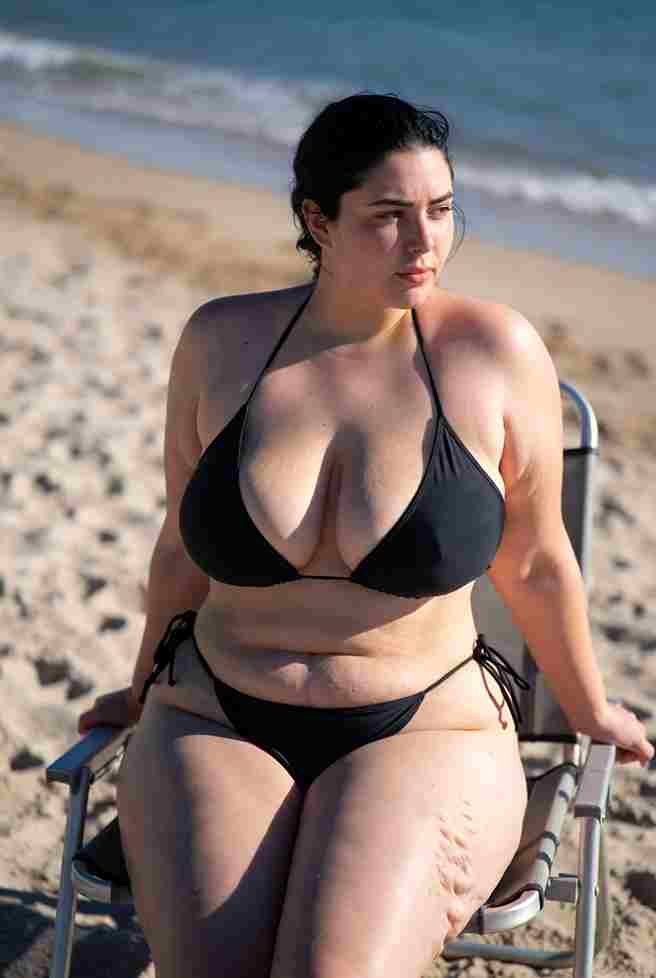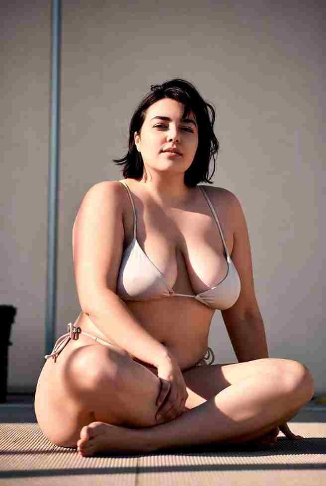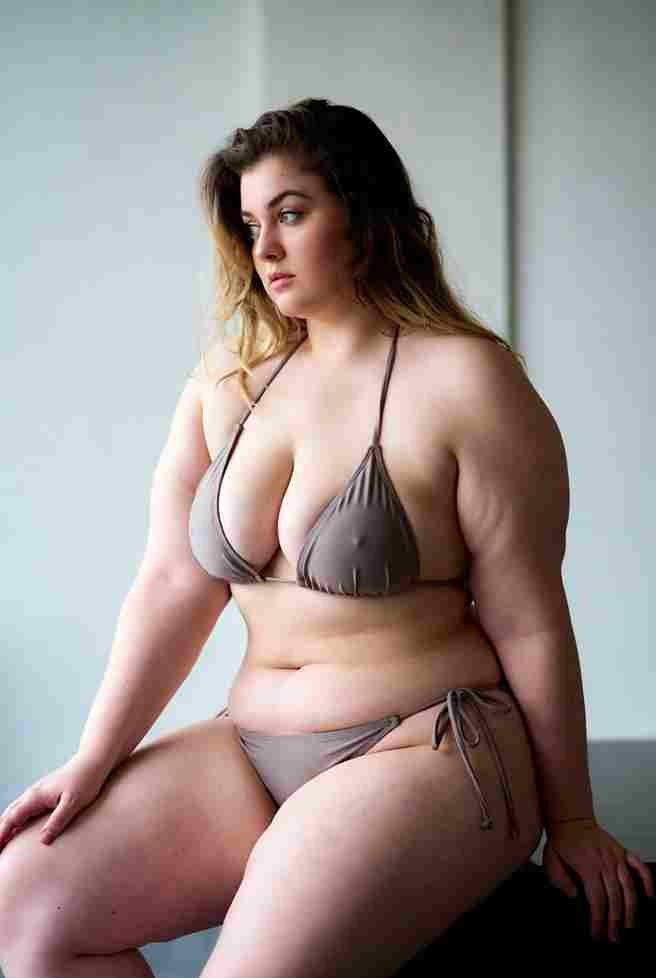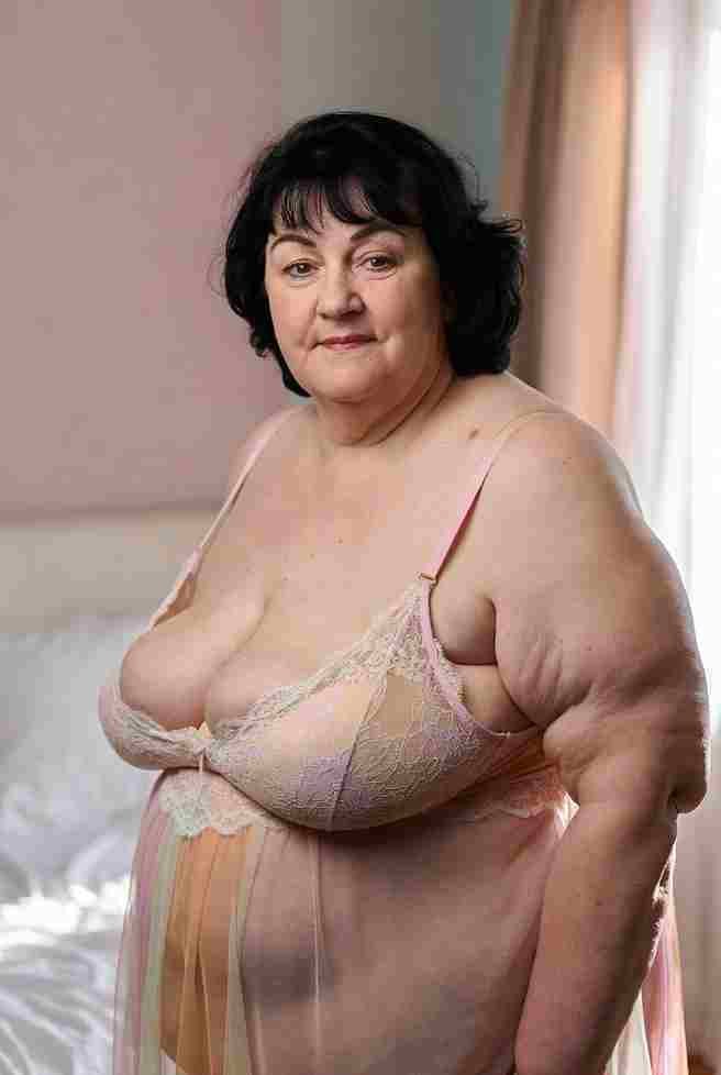 Wearing a black leather harness bra that crisscrosses her torso and pushes her massive tits up high, paired with a tiny matching thong shoved aside and thigh-high patent boots. She’s standing with her back against the wall, one leg lifted and hooked over her forearm, opening herself completely. Long dark hair cascades over one shoulder as she works four fingers knuckle-deep, curling hard against her G-spot while her thumb grinds frantic circles over her throbbing clit. She tilts her head back against the wall, biting her glossy lower lip, giving slow, seductive rolls of her hips that make the leather creak softly. Her free hand slides up to squeeze her breast, pinching the nipple until it’s rock-hard. Her breathing turns into throaty moans—then her standing leg trembles violently. A powerful gush sprays outward in arcs, splattering the wall behind her and dripping down her boots in glistening streams.