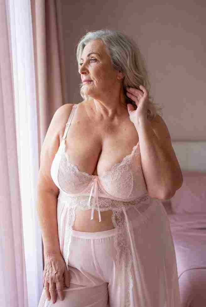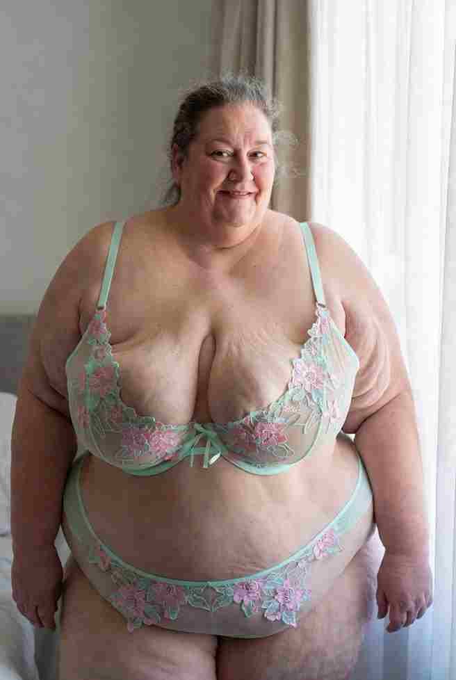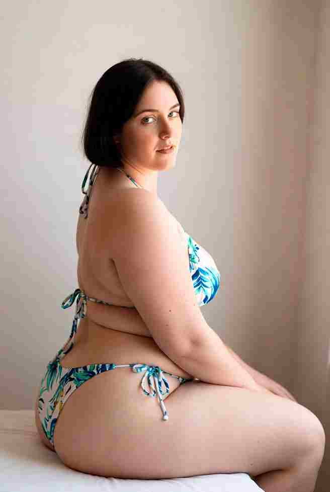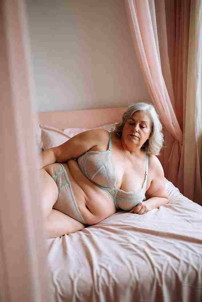 Posed on all fours atop a fur rug in emerald-green lace lingerie: a demi-cup bra that barely contains her overflowing cleavage, garter belt, and stockings with delicate bows. The crotch is cut out, framing her dripping folds perfectly. She lowers her chest to the fur, ass high and swaying seductively, then reaches back with both hands—one spreading her cheeks wide, the other plunging three fingers in fast, deep thrusts while rubbing her clit in tight, desperate circles. She looks back over her shoulder with smoky, half-lidded eyes, tongue darting out to wet her lips in pure invitation. Her thick thighs quiver in the stockings—hips grinding back onto her fingers like she’s being taken from behind. Suddenly her whole body locks; a violent squirt blasts backward in forceful streams, soaking her garters, running down her legs, and matting the fur beneath her.
