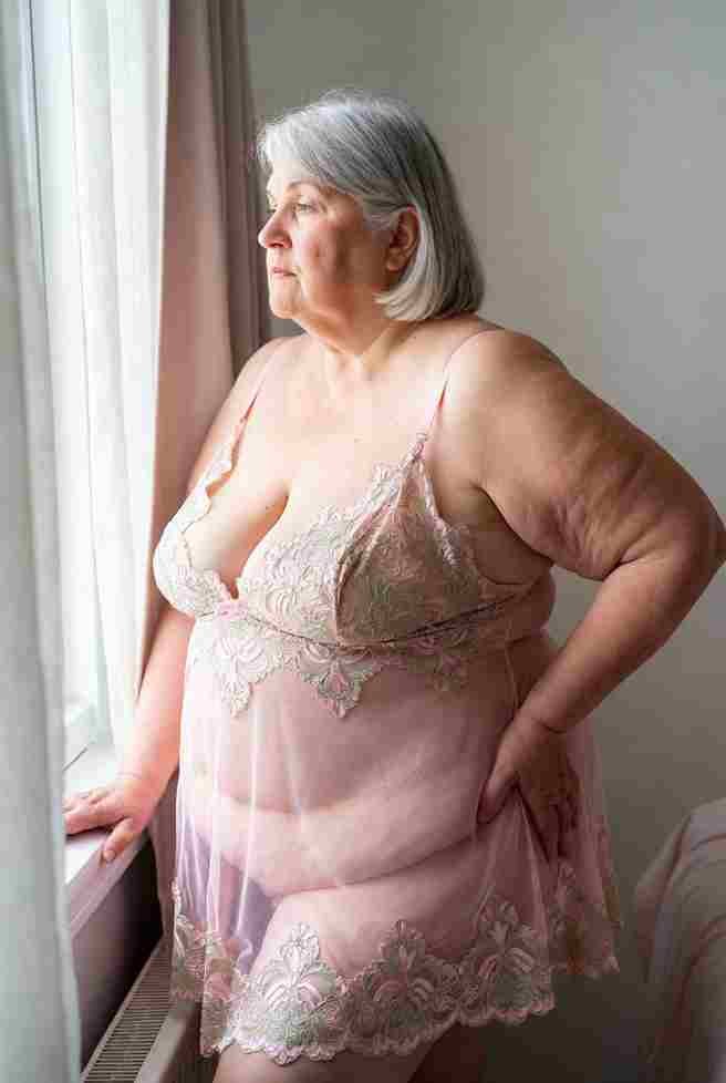 She’s straddling a wide leather bench in a sheer white babydoll that’s completely transparent when wet, the crotch already pushed aside. A Hitachi wand is taped securely between her thighs, pressed flush against her swollen clit on maximum power. Both hands are busy: one holding a curved, ridged prostate-style toy angled hard against her G-spot, pistoning in and out with short, brutal strokes; the other pinching and twisting her nipples through the thin fabric. Her head falls back, mouth open in a silent scream as the orgasm hits—her pelvis jerks forward repeatedly, and clear squirt sprays out in forceful pulses, drenching the bench, running down her legs, and puddling on the hardwood floor below.